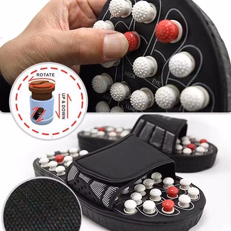 Våra Akupunktur Tofflor är mer än bara bekväma. De är utformade för att stimulera viktiga akupunkturpunkter på dina fötter, vilket hjälper till att lindra smärta, förbättra blodcirkulationen och främja en djup känsla av avslappning. På bara 15 minuter om dagen kan du säga adjö till trötta, ömma fötter och hej till ett nytt, mer energiskt du.
