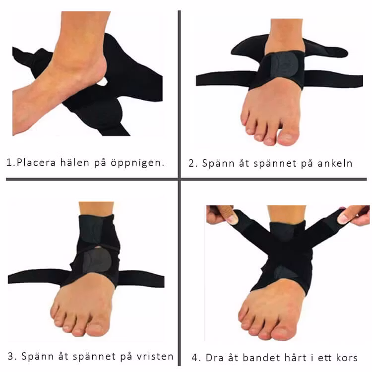 Kombinationen av kompressionsmaterial, NeoTEX och ett stabiliserande fotledsband resulterar i ett ankelstöd som ger utmärkt stabilitet och behaglig komfort som är utmärkt för att förebygga och rehabilitera skador i fotleden.