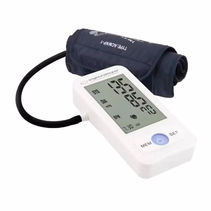 En blodtrycksmätare med digital display som gör att du kan ta ditt blodtryck när som helst och var som helst.