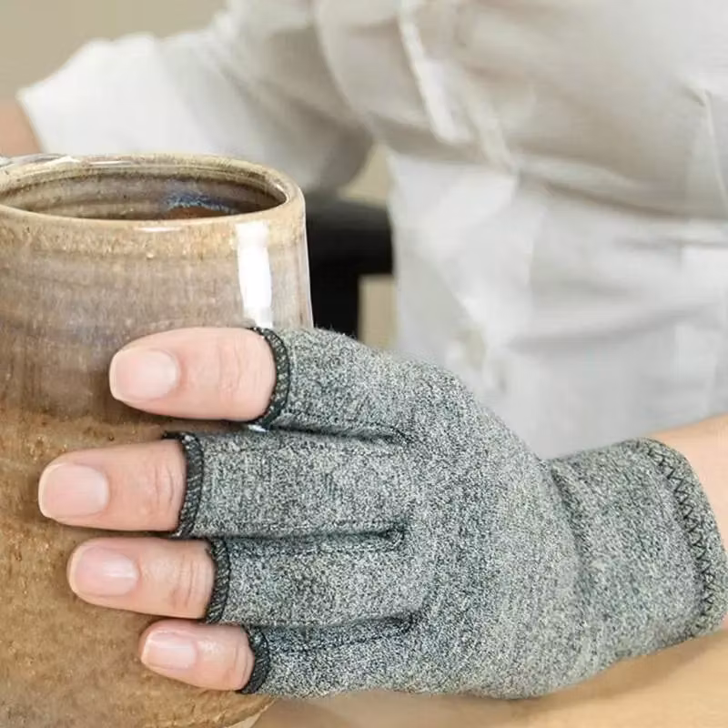 - Fingerlösa kompressionshandskar för att lindra smärta och svullnad