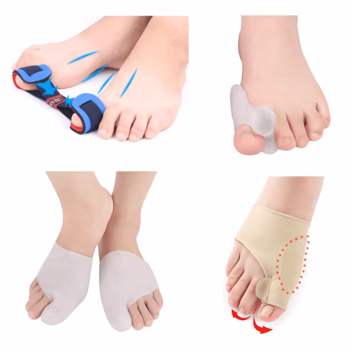 Med hjälp av dessa produkter kan du lätt minska smärta från hallux valgus. Paketet innehåller fyra olika hjälpmedel som kan användas både utomhus i dina skor och inomhus.
