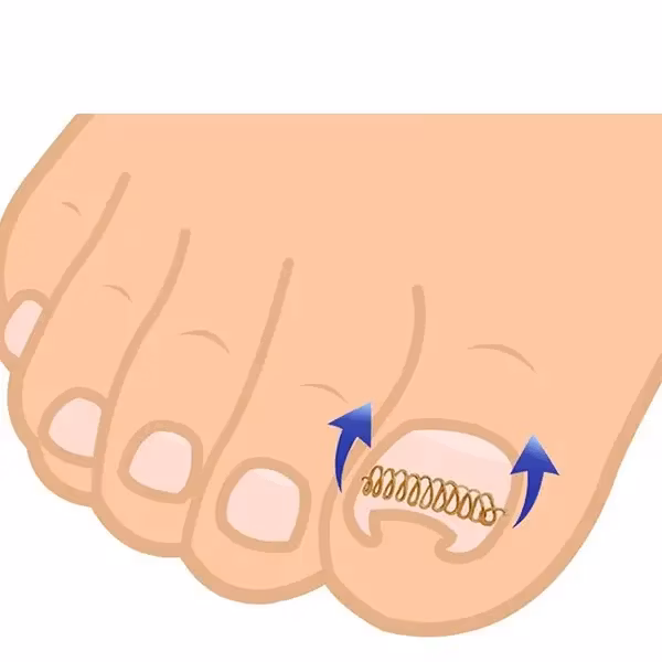 Du kan i ett tidigt skede, med hjälp av dessa nageltrångsbyglar, räta ut nageln genom att fästa bygeln över nageln så den rätas ut vilket förhindrar den från att växa i fel riktning.