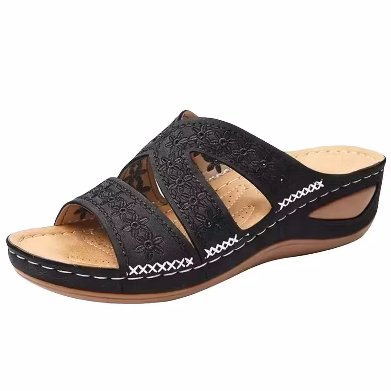 Somriga Damsandaler med Kilklack – Ortopediskt Stöd & Retrodesign