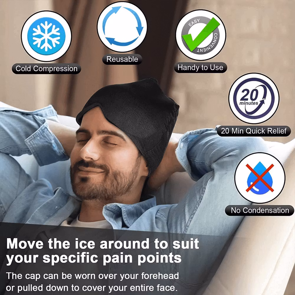 Gelmasken är tillverkad av högkvalitativa material och är elastisk för att passa alla huvudstorlekar. Oavsett om du är hemma, på kontoret eller reser, kan du använda vår migränmössa när som helst och var som helst.