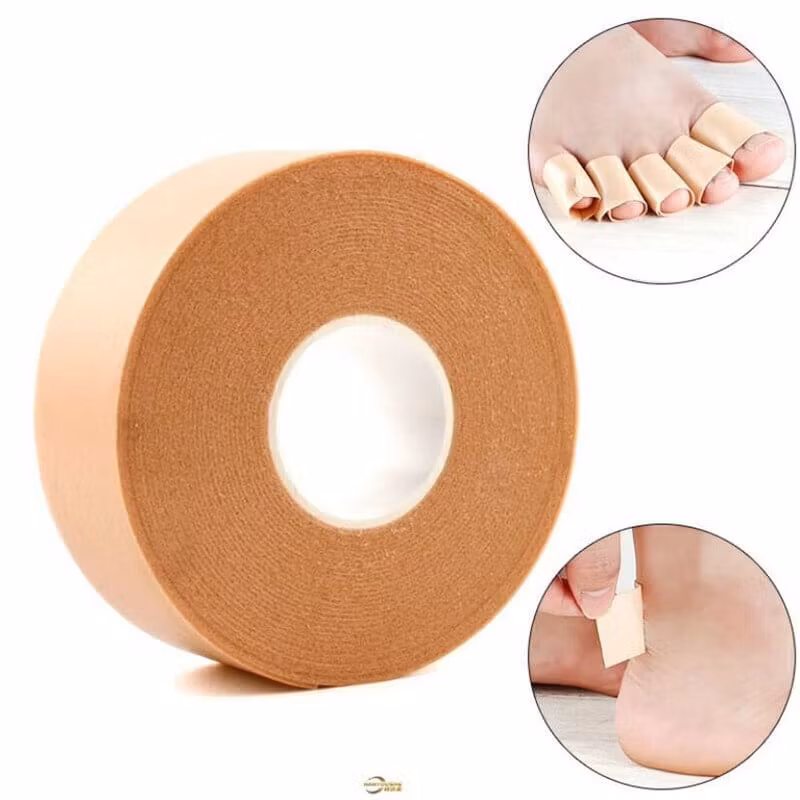 Skoskavstejpen är motståndskraftig mot fukt. Den här tejpen är en fukttät typ som håller sig på plats och stannar kvar på foten även när foten blir våt av regn eller svett.