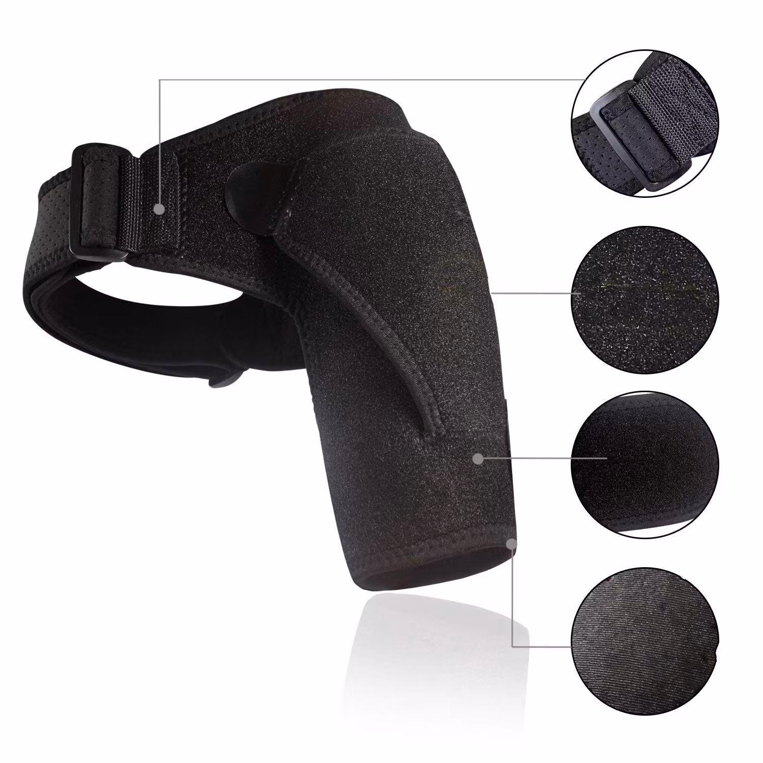 "Axelskyddet" är tillverkat av ett andningsbart material som ger en bekväm passform för aktiva människor. Dess enstorleksdesign gör det möjligt för dig att justera det efter din personliga komfort, så att du kan bära det med dig när du tränar, springer eller är aktiv på annat sätt.