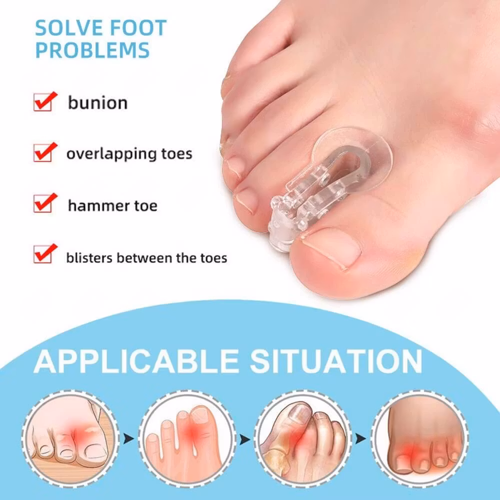 Använd våra tåsepararerare dagligen för att förbättra fotens hälsa och undvika smärta och obehag. De är lätta att använda och kan bäras när som helst och var som helst. Beställ nu och upplev den ultimata fotkomforten!
