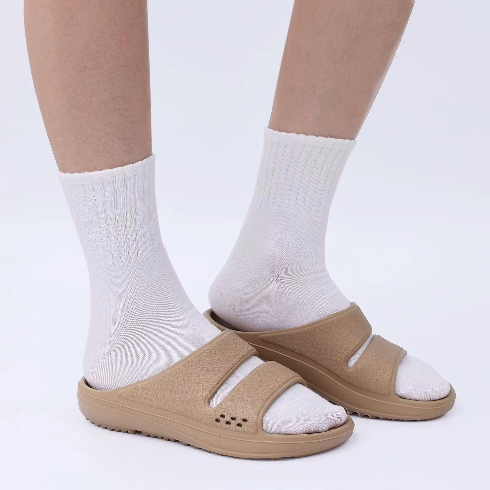 Våra Cloud Slippers med fotvalvsstöd är designade för att ge maximal komfort både hemma och på språng. Den extra mjuka, stötdämpande sulan formar sig efter din fot och ger ett lätt, svävande steg – perfekt för både strand, badrum, pool eller inomhusbruk.